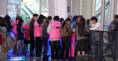 在地坛公园南门和东门,新京报记者发现有多个地坛庙会售票处,当天下午2点,前来地坛庙会的游客人数仍然没有减少,售票窗口排起了长队。王姐说,他们的人会到队伍中卖票。