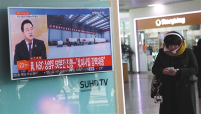 2月12日,在韩国首尔火车站,韩国媒体播出朝鲜试射弹道导弹的电视新闻。韩国军方表示,朝鲜当天早上发射一枚弹道导弹。新华社记者 姚琪琳 摄