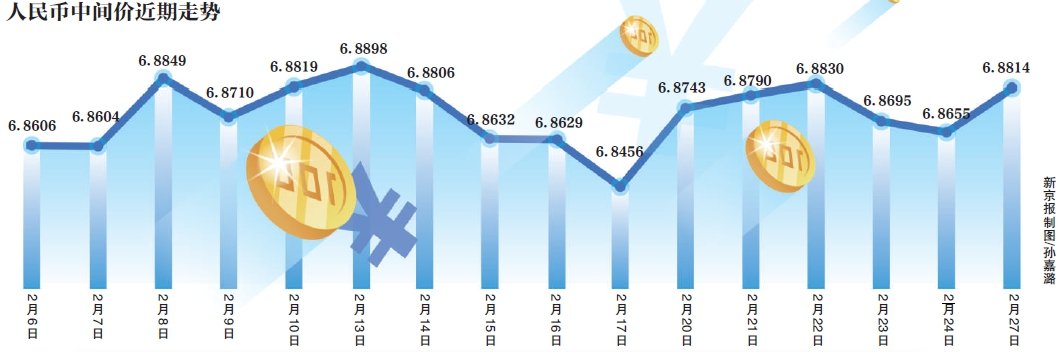 新京报记者注意到,相比于以往的大起大落,近期人民币兑美元汇率中间价颇为稳定。自从1月下旬以来,中间价长期在6.8-6.9的区间小幅波动。