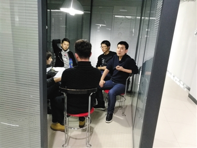 正茂创业园内正在开会的企业员工。本版摄影/新京报记者 罗亦丹