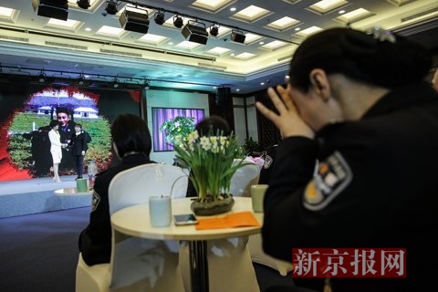 活动现场,牺牲警察家属上台与主持人互动。