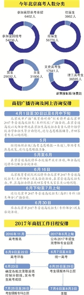 距离2017年北京高考还有2个多月,今年全市高考报名总数为60638人,报名人数已连续11年出现下降;共有243名符合条件的非京籍考生报名参加高职招生考试。