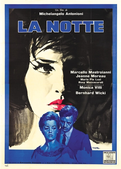 初看此片还未知情滋味,却仍会为电影中爱情的无力感所嗟叹。当夜幕降临,在那些精巧空间里的破碎日常如此让人着迷,而片中所描写的细腻的情感关系则切中了现代社会的虚无,即使放到今天也同样成立。这部电影对于我来说太完美了,几乎无懈可击,让我们再次沉沦在绝美的夜里吧。伟大的安东尼奥尼,伟大的马塞洛!
