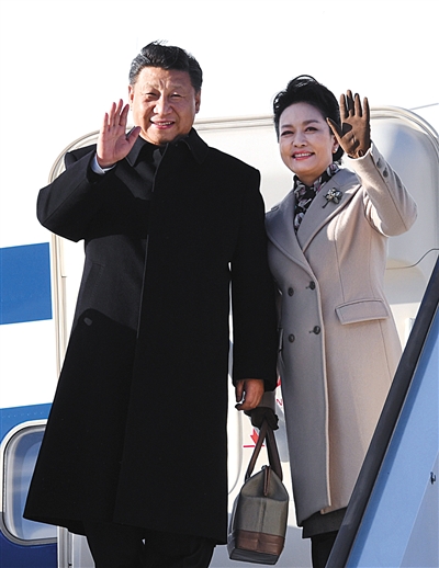 4月4日,国家主席习近平乘专机抵达赫尔辛基,开始对芬兰共和国进行国事访问。这是习近平和夫人彭丽媛步出舱门。 新华社记者 饶爱民 摄