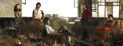 江一燕、林家栋、刘青云、古天乐、张晋(从左至右)五大主演在海报上穿着复古、神情各异。