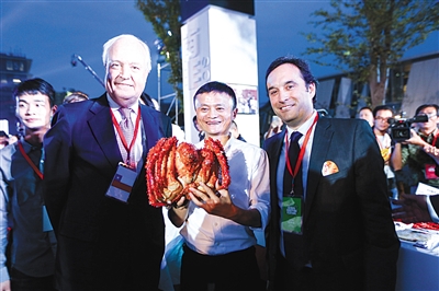 阿里巴巴西溪园区,马云手捧6斤重的俄罗斯帝王蟹。