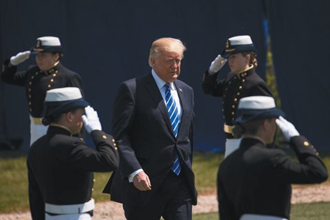 ▶当地时间2017 年5 月17日,美国康涅狄格州新伦敦,美国总统特朗普出席海岸警卫队学院毕业典礼。图/视觉中国