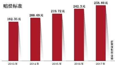 随着工资水平上涨,近几年的国家赔偿标准也在不断提高,2013年侵犯公民人身自由权的日赔偿标准为182.35元、2014年为200.69元、2015年为219.72元、2016年为242.3元。