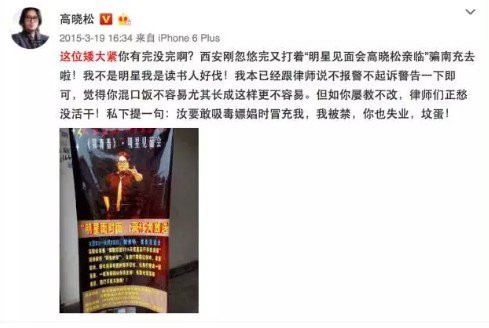 ▲高晓松怒怼山寨版高晓松 图片来自高晓松微博截图