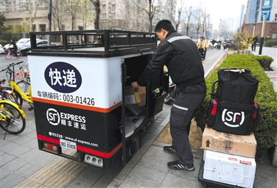 2017年3月17日,北京,顺丰速运快递员。图/视觉中国