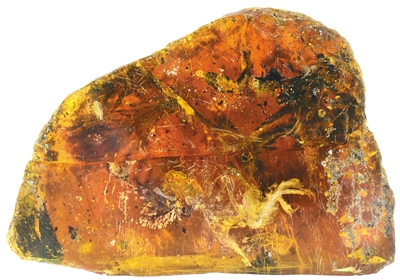 琥珀中的雏鸟不是很完整,腰腹不见了。我们猜想,它被琥珀粘住的时候,腰腹刚好露在琥珀外面了。有一些吃腐食的动物,把它吃掉了,或者腐烂掉了,新的树脂落下来的时候,腰腹已经没了。