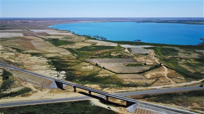 这是在新疆阿勒泰市阿苇滩镇拍摄的北(屯)阿(勒泰)铁路与216国道线的交汇处。新华社发