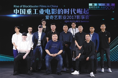 第一排:导演冯小刚、王晶,华谊兄弟传媒股份有限公司副董事长兼CEO王中磊。第二排:新导演吕聿来、周劼,Base FX创始人兼CEO克里斯托弗·布雷姆,爱奇艺创始人、CEO龚宇,新导演姜凯阳,金海岸影业总裁刘晓光,导演屈志鑫,爱奇艺影业总裁亚宁。第三排:乐视影业副总裁黄紫燕、大盛国际传媒集团董事长安晓芬。 本版图片由爱奇艺提供