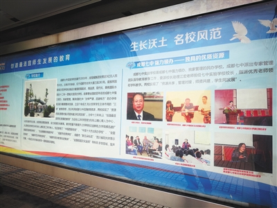 校园宣传栏上介绍,七中实验“与成都七中在教师培训、集体备课、考试评估、课题研究等方面实现无缝对接”。校园内,七中实验学生穿着的校服,也与成都七中款式类似。