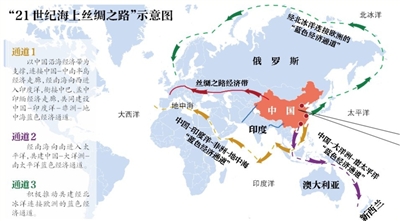 中国政府向21世纪海上丝绸之路沿线国发出倡议,以共享蓝色空间、发展蓝色经济为主线,共走绿色发展之路,共创依海繁荣之路。