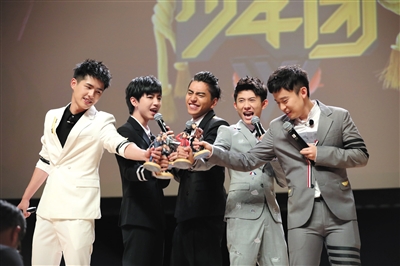 刘昊然、王俊凯、王大陆、张一山、董子健(左起),在收官之战中亮相。