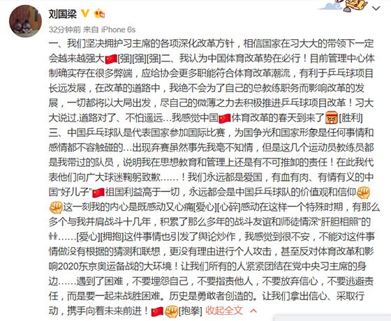 以下为刘国梁表态全文: