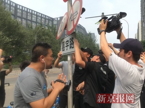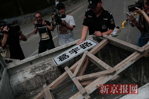 城管拆除“葛宇路”路牌。新京报记者 曾金秋 摄