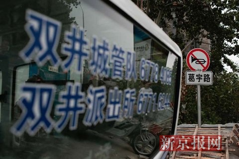 城管队的车辆抵达。新京报记者 朱骏 摄