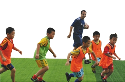 外籍教练指导中国小球员。