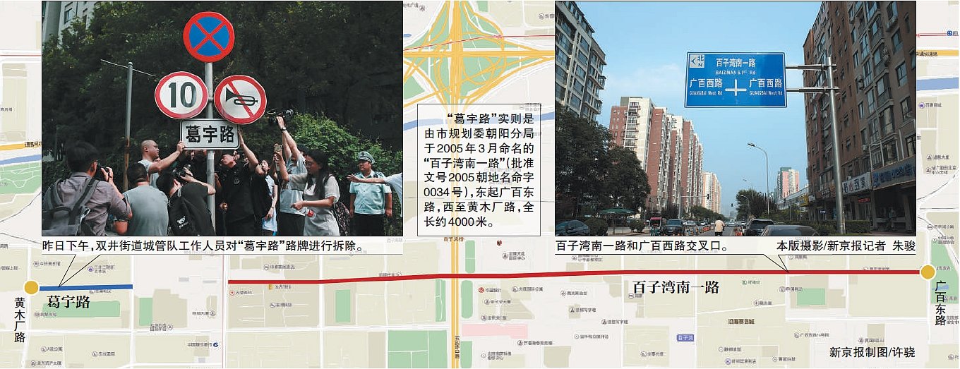 昨日上午,记者从朝阳区双井街道办获悉,将对位于该街道办附近的“葛宇路”路牌进行拆除。