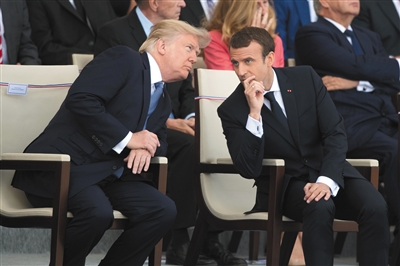 特朗普13日抵达法国巴黎,随后与马克龙举行会谈,话题涉及打击恐怖主义、叙利亚问题、气候治理、自由贸易等。