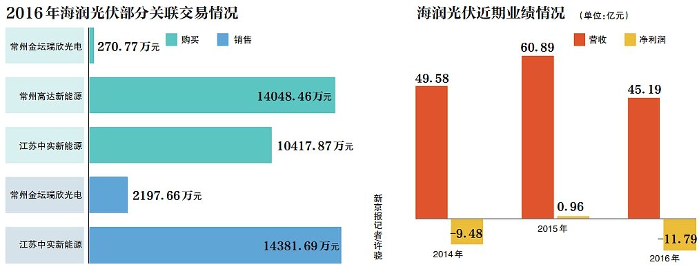 在2016年,瑞欣光电与海润光伏发生了巨额的关联交易:查阅年报中涉及瑞欣光电的关联交易信息显示,2016年采购硅片260.68万元,采购银浆10.09万元,销售电池片156.07万元,加工费2041.59万元。