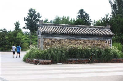 公园里的影壁用唐家岭拆迁的老材料修建而成。