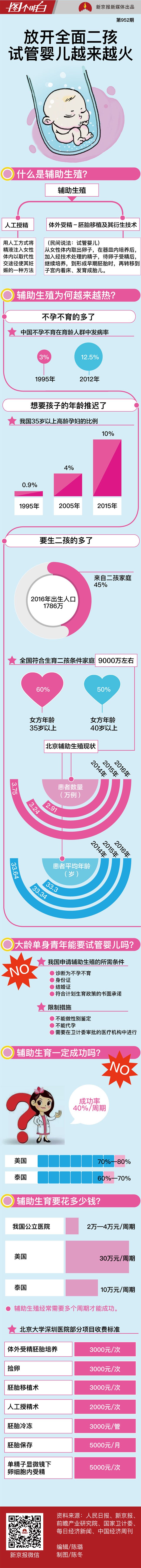 在我国符合生育二孩条件家庭中,有60%是女方年龄在35岁以上,随着年龄增长,而且近年来不孕不育的发病率在我国有明显上升趋势,这些使得辅助生殖的需求变大。目前我国获准实施辅助生殖的医疗机构有451家,但对于这种治疗,并不是所有人想做就做的。首先,必须是已婚夫妇,且被诊断为不孕不育。 单身人士想就别想了。 此外,虽然辅助生殖是针对不孕不育最好的方式,但国内平均一个周期的成功率大约只有40%。多数患者不可能一个周期成功,在国内公立医院平均一个周期要2万到4万元的费用。有些患者考虑出国接受辅助生殖,比如美国,一方面因为成功率更高,另一方面有些国家可以选择胎儿性别。但据媒体报道,在美国试管婴儿一次的价格大约需要30万元。(更多新闻,请关注新京报微信公号:bjnews_xjb)
