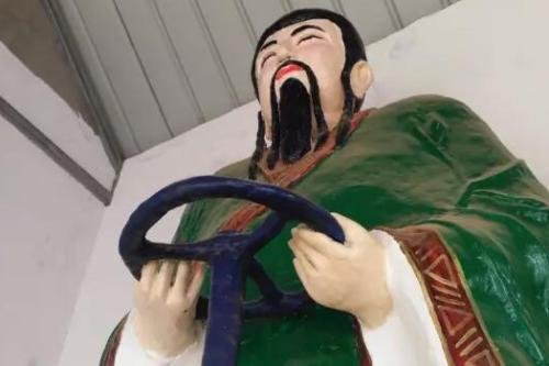 在奶奶庙的诸多民间创作中,最让人称奇的是最近很火的易县后山奶奶庙的这尊“车神”,它以其童叟无欺的造型,简明扼要的气质,还有那捕捉时代精髓的方向盘,让人顿生五体投地之感。