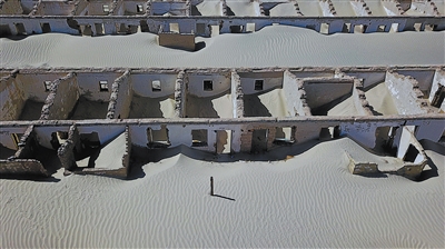 8月11日,冷湖行政委员会五号基地,废弃的原石油基地生活区被风沙侵蚀。