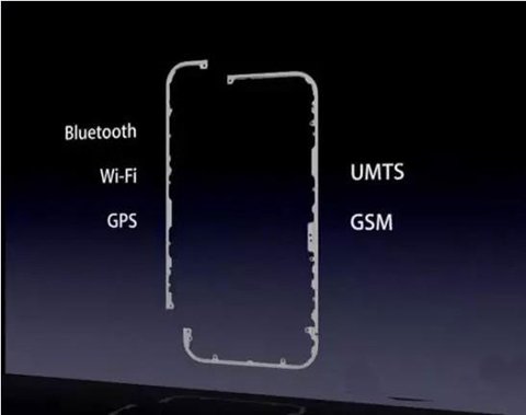 ▲左侧和顶部的两条缝隙将其分为两段,两段中的左半部分起到了WiFi、蓝牙和GPS天线的作用,右半段则是UMTS/GSM手机网络天线。