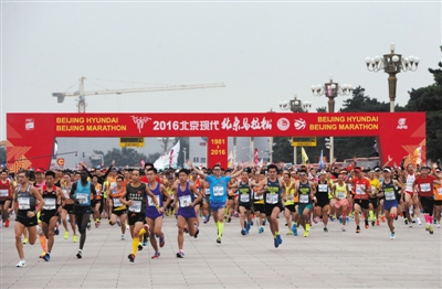 2016年北京国际马拉松赛开跑。新京报记者 吴江 摄