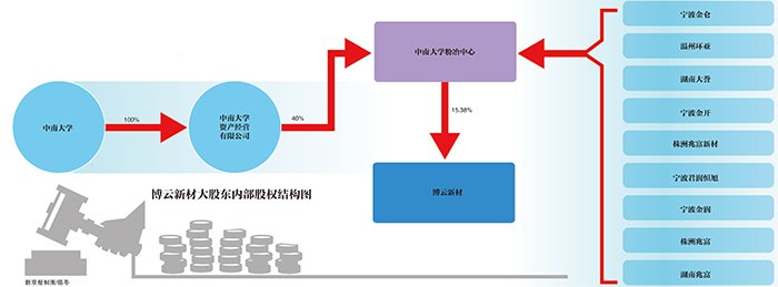 公开资料显示,博云新材大股东粉冶中心成立于2001年,主要从事粉末冶金新技术和新工艺、特种金属粉末制备技术、冶金专用设备的研究、开发、生产和销售。2011年之前,粉冶中心注册资本达8000万元,为中南大学资产经营有限公司(下称“中大资产”)全资控股企业。