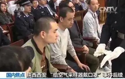 ▲陕西西安“给空气采样器戴口罩”一事审判现场。图据央视新闻