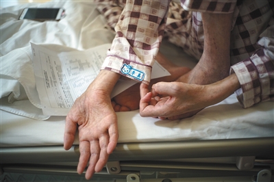 如今,他的小腿日渐萎缩,仅有普通人胳膊一般粗,体重降至80斤;由于血小板减少,皮肤生出褐色瘀斑;严重感染和免疫力下降,他咳嗽不止,走两步就气喘。