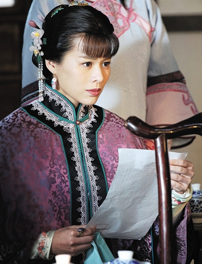 到后面她慢慢把吴家振兴起来,去做生意,她的造型与当初少奶奶的衣服又有明显的区别,她已经有自主权去决定自己的穿着,在用色上面运用了比较明亮的颜色,与她本身大剌剌的形象如出一辙。