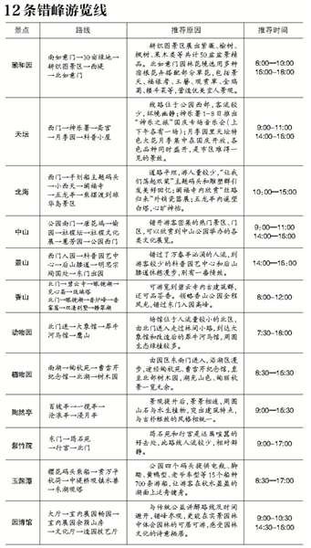 市公园管理中心相关负责人介绍,游客可根据时间安排等自行选择“游园路线”。