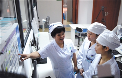 “针管拿出来时针头要朝下,用右手的大拇指和食指捏住针头,先旋转一圈才慢慢扎进静脉血管。拔针时一定要将手固定好,防止病人突然动作让针扎到你。”杜丽群每天都耐心地提醒护士们,但危险仍时有发生。