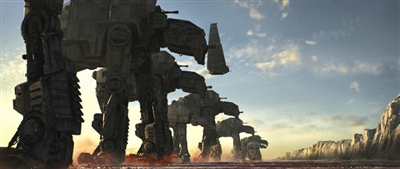 《星球大战》里最具代表性的机器就是这个庞然大物了,它的全称叫做“全地形装甲步行机”,简称“AT-AT”。它有四条腿,虽然行进得速度慢,但是胜在有庞大的身躯、厚实的装甲,宛如一座移动的钢铁堡垒。