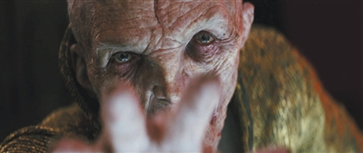安迪·瑟金斯通过动作捕捉扮演的大反派“斯诺克”在预告片里也有一个特写镜头,这次他不是全息投影,而是血肉之躯。看得出他想要说服蕾伊投靠自己的阵营,甚至为此威逼利诱(就像当年西斯大帝对卢克那样)。