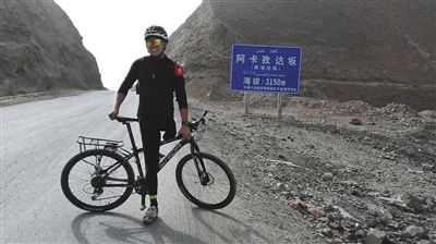 一年后,孙有志又出发了。10月13日,在经过红土达坂路段时,孙有志遇上了一段长达90公里的上坡路,一路逆风,海拔超过5000米,骑完这一段,他一连休整了四天。