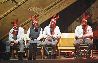 全程陪坐在连排座椅中的几名老演员则在演出最后的段落才正式出场,他/她们是随着战争成长、成家,随着战后消逝的一代人。某种意义上,本剧就是这些已被历史遗忘的老人的自叙,透过十篇贯穿人生的个体史诗,涉及了借机施暴的民族性根源、波兰百姓对犹太民族的负罪等话题。但在我看来,这些并不是作品的矛头所向。拨开层层包裹,关于波兰、立陶宛乃至整个东欧列国,这些身处东西之间的小国到底算什么的“我是谁”终极命题才是本剧最深层的议题。
