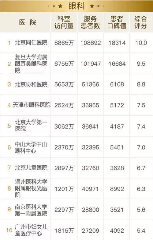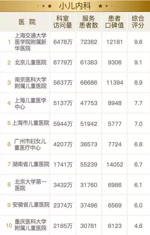 该榜单包括26个科室排名,与传统医院科室排名更注重学术能力等不同,健康报移动健康研究院根据患者线上访问量、在线服务患者数、患者网上评价等维度评出“2017全国医院互联网影响力排行榜之患者最信赖的科室”十强名单,好大夫在线提供了数据支持。