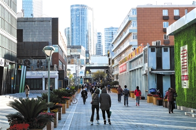 昨日,改造后的三里屯“脏街”更名为三里屯西街。新京报记者 王嘉宁 摄