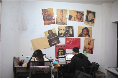11月7日,赵晨阳(右)在创业学院提供的创业楼内经营着自己的网店。