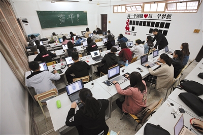 11月8日,义乌工商职业技术学院创业学院16视觉营销班的同学正上早自习。