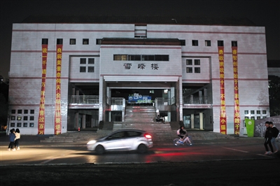 11月9日,义乌工商职业技术学院创业学院大楼上挂着“双11”主题的宣传标语。