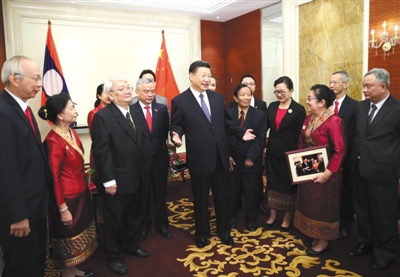 习近平强调,奔舍那家族同中国的友谊已经成为两国友好的一段佳话,是国家间讲平等、重感情的典范。你们了解中老两国文化和历史,现在又是两国友好事业的直接参与者,担当着中老友好使者和桥梁的角色。老挝是中国铁杆朋友。当前,中老关系不断发展,合作空间更为广阔。我这次访问老挝,同老挝党和国家领导人就深化两国各领域合作、共同打造中老具有战略意义的命运共同体达成新的重要共识。我们要永远铭记两国老一辈领导人友好交往的传统历史,继续肝胆相照,不忘初心,秉承传统友谊,弘扬革命传统,为中老友好事业不断贡献力量。