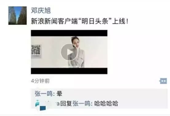 “惊喜”来自新浪新闻客户端于27日上线的“明日头条”,其slogan是“你期待的才是头条”。又是一款“头条”,也难免有些挑衅的意味,要知道,今日头条的slogan是“你关心的才是头条”。针对新浪这一举动,张一鸣在新浪网副总裁邓庆旭的朋友圈动态下留言:“晕”。